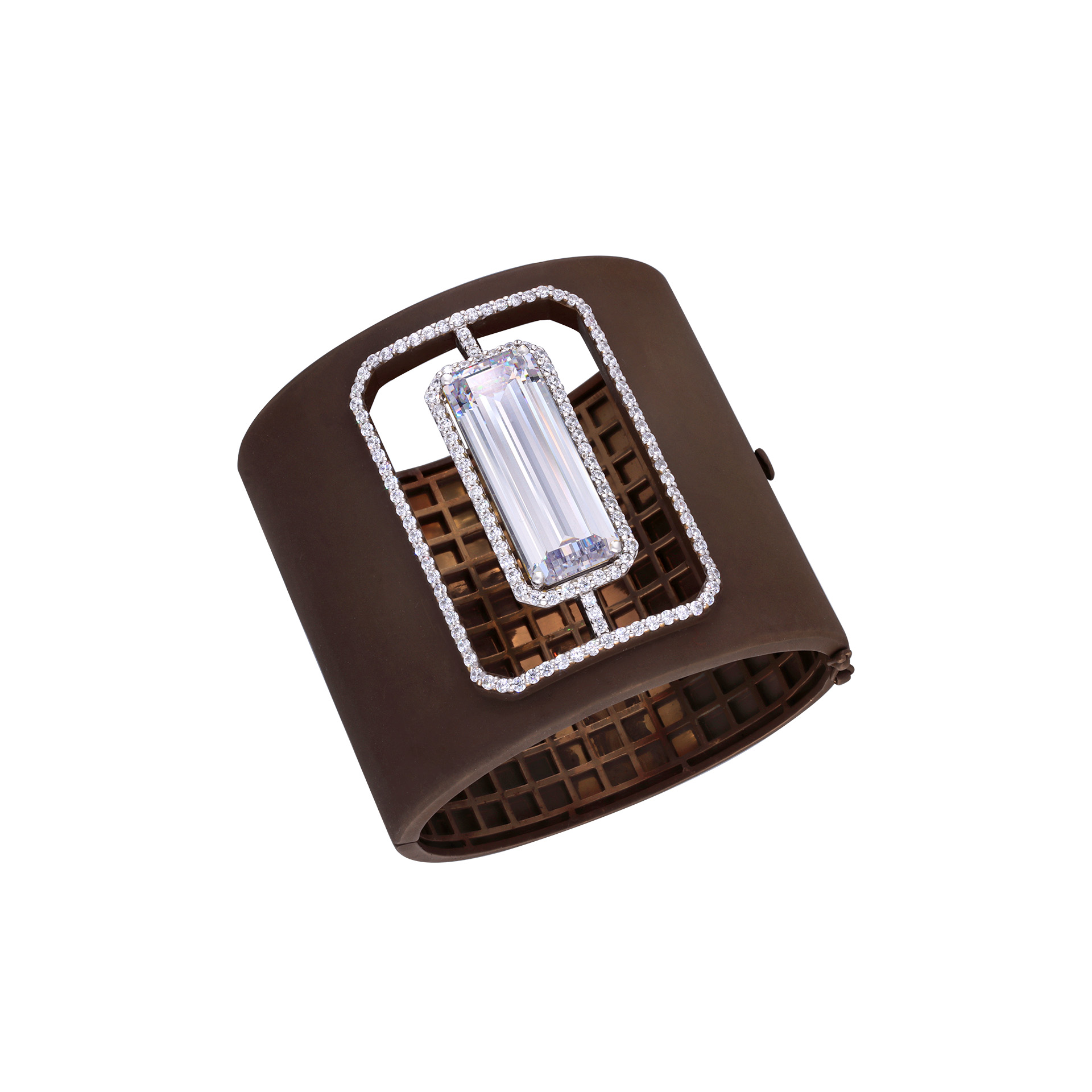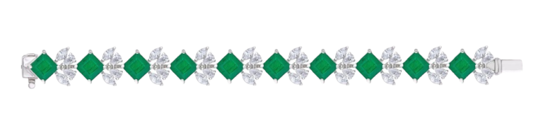 Cuff Bracelet in White Swarovski Zirconia with Square Shaped Man-Made Emeralds