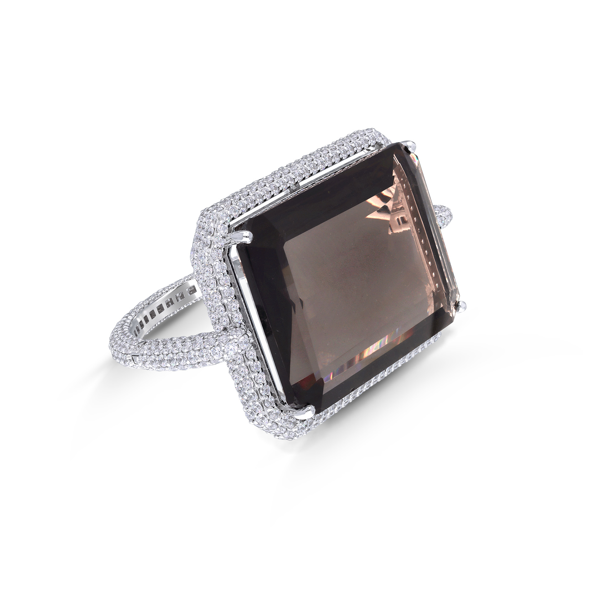 Cuff Bracelet in Yellow & White Swarovski Zirconia with Octagon Shaped Man-Made Emeralds