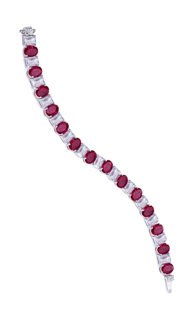 Cuff Bracelet in White Swarovski Zirconia with Pear & Round Shaped Man-Made Rubies