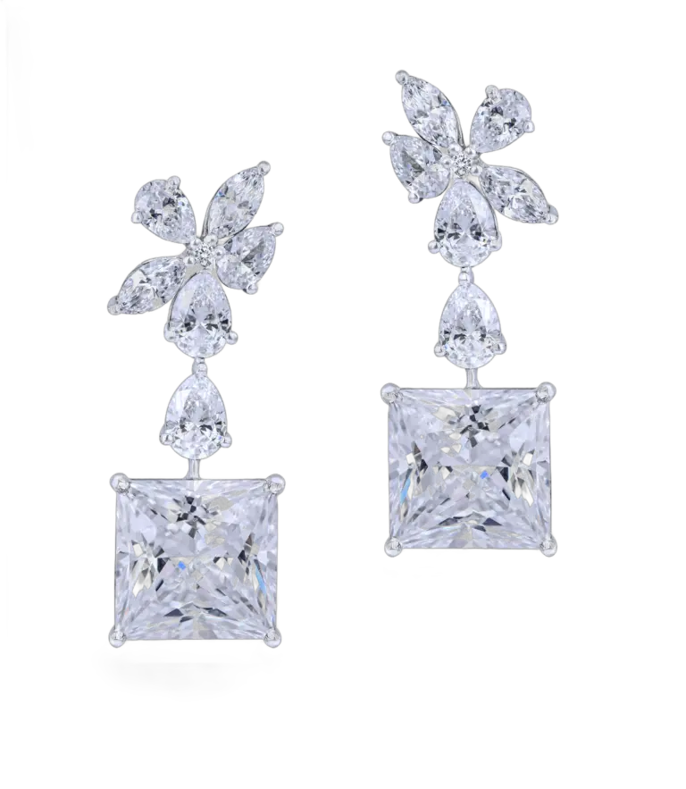 Earrings in White Octagon & Oval Shaped Swarovski Zirconia Stones