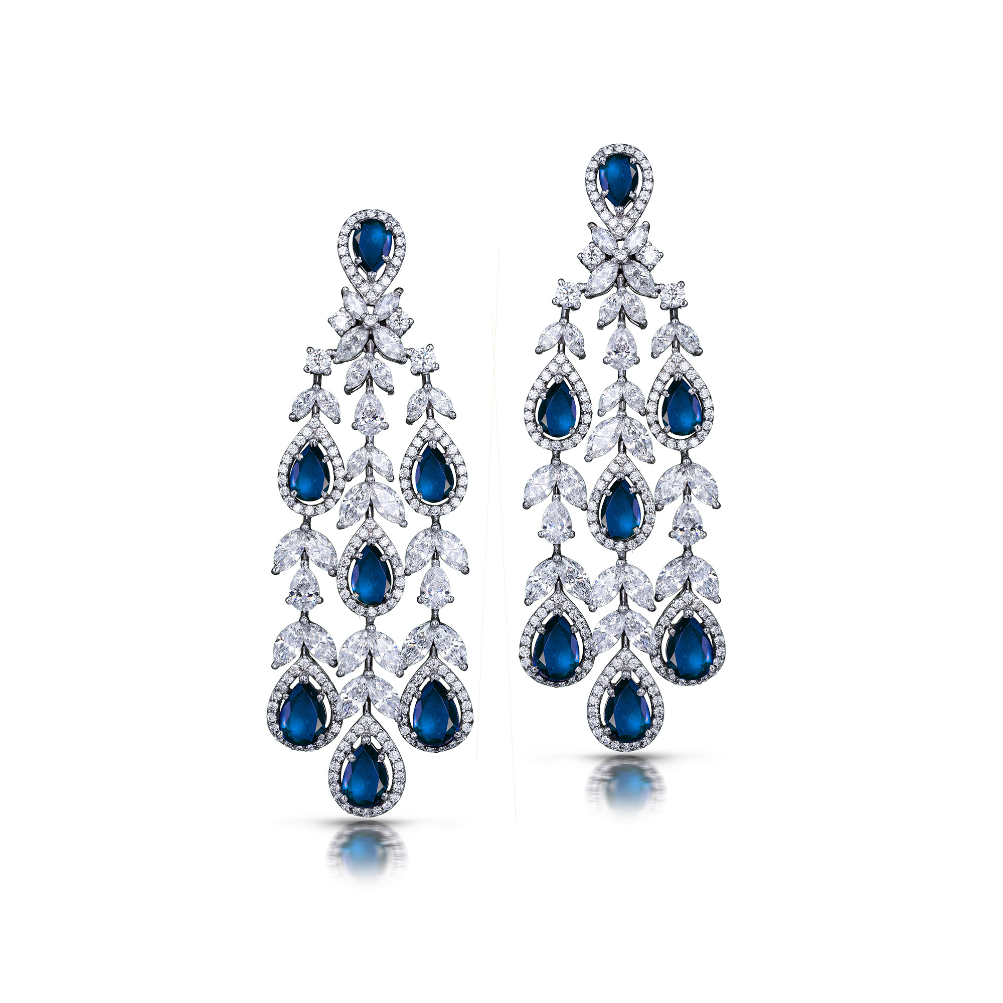 Bridal Earrings in Swarovski Zirconia with Pear Shaped Man-Made Sapphire