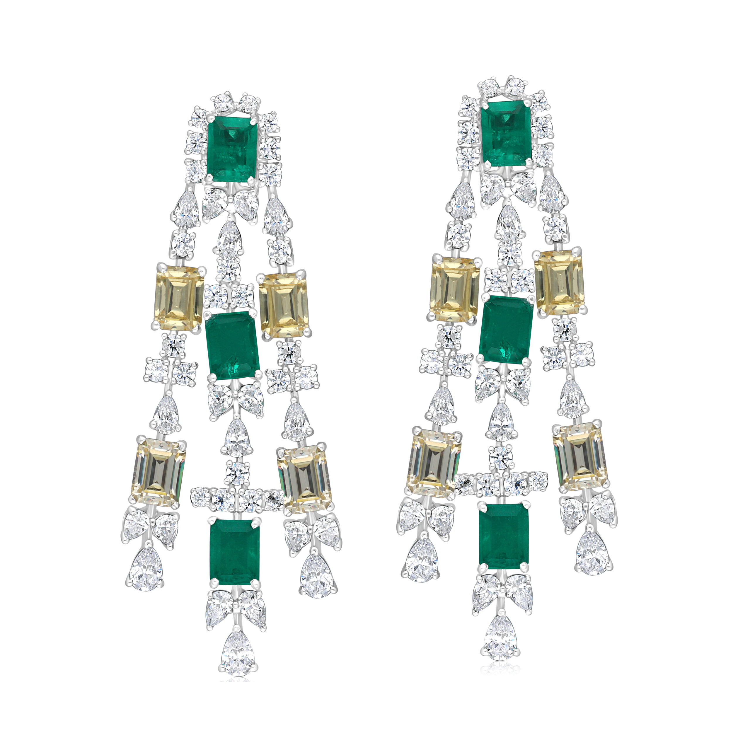 Bridal Earrings in Yellow & White Swarovski Zirconia With Man-Made Emeralds