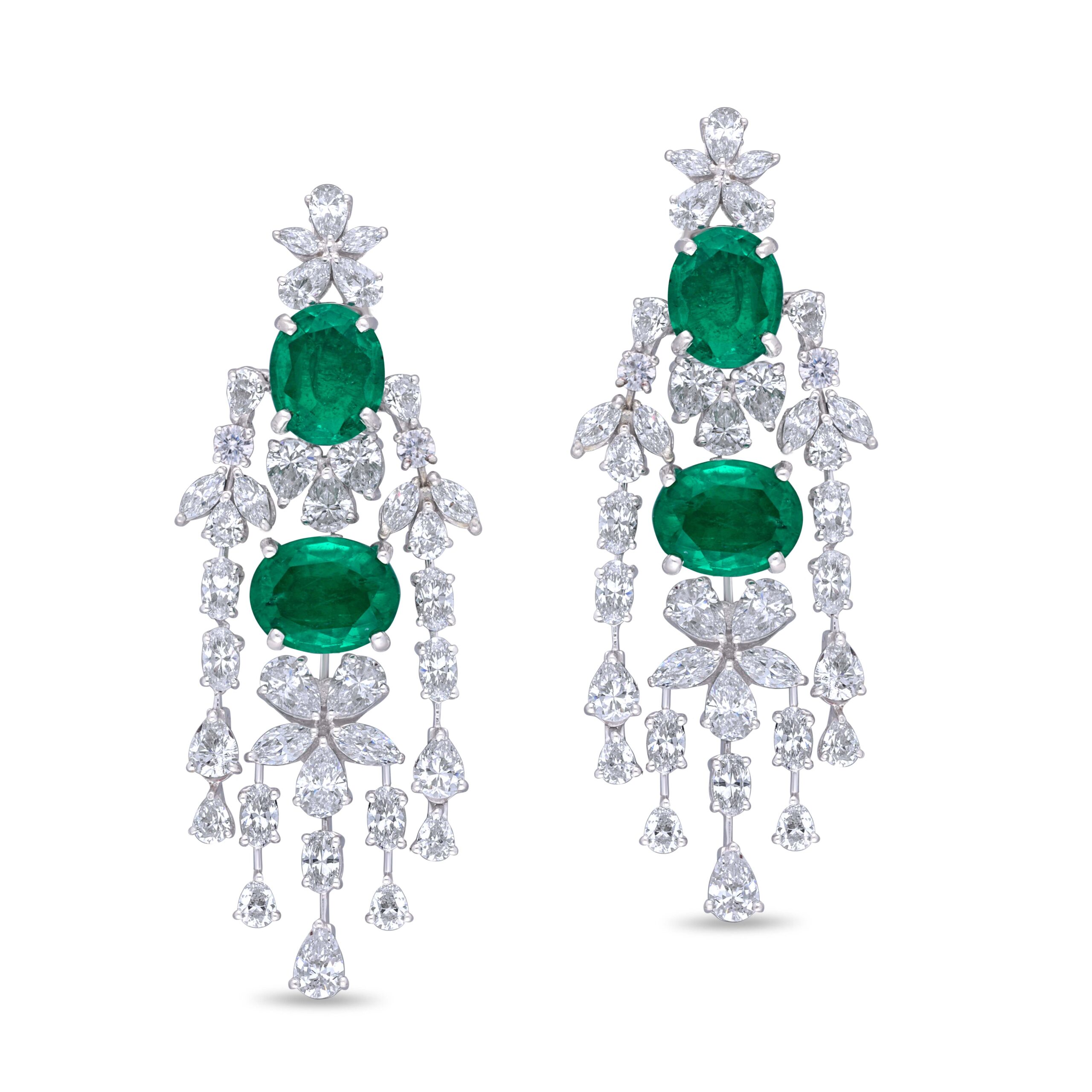Bridal Earrings in White Swarovski Zirconia & Oval Shaped Man-Made Emeralds