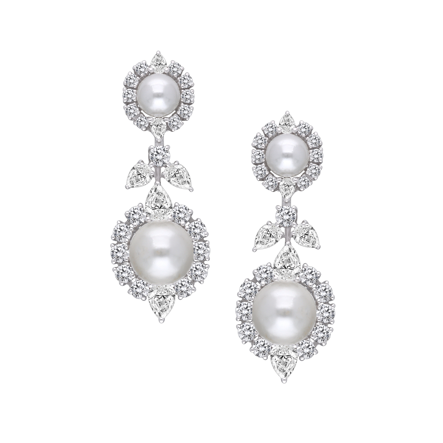 Bridal Earring in Mix Shaped White Swarovski Zirconia with White Man-Made Korean Pearls