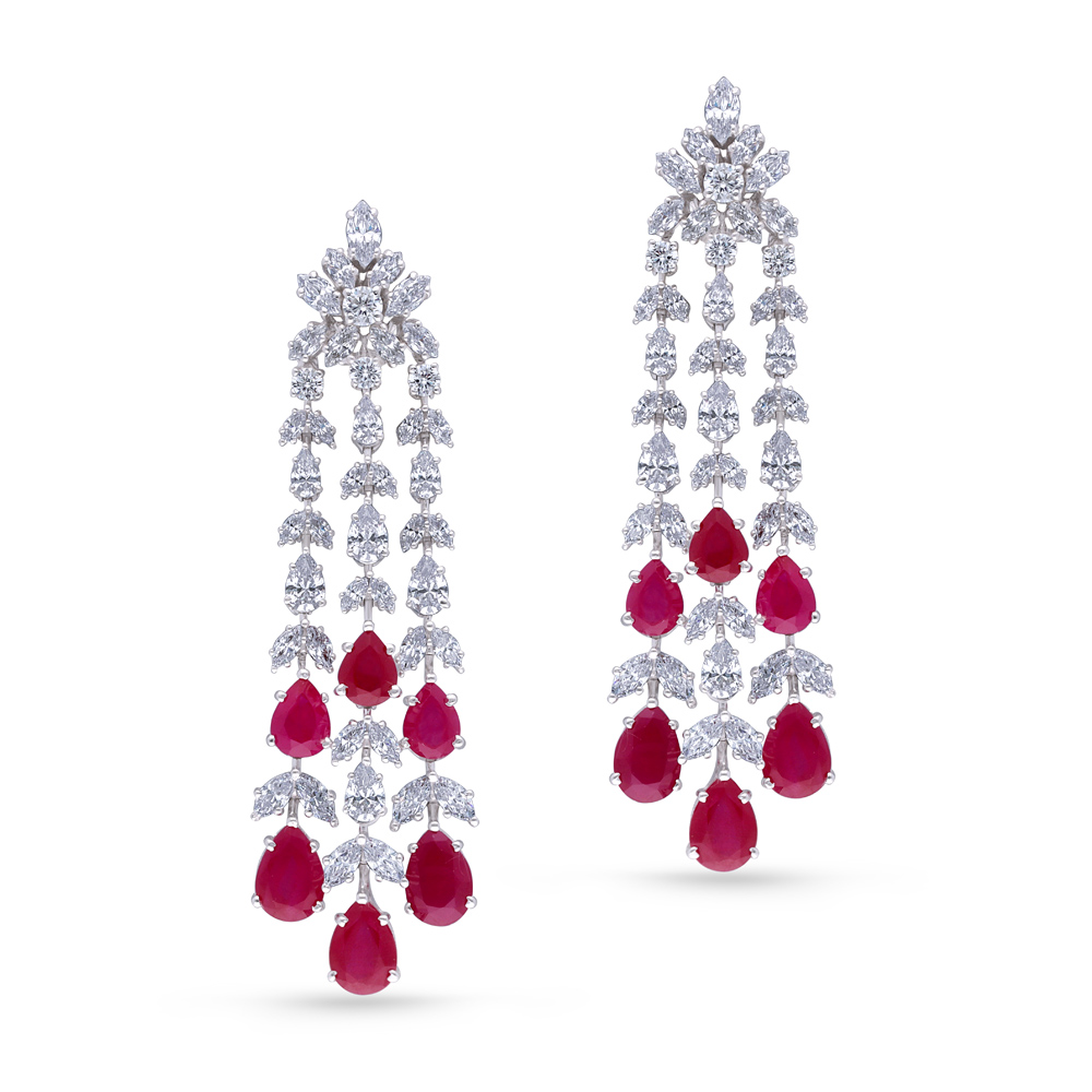 Bridal Earrings in White Swarovski Zirconia & Man-Made Rubies