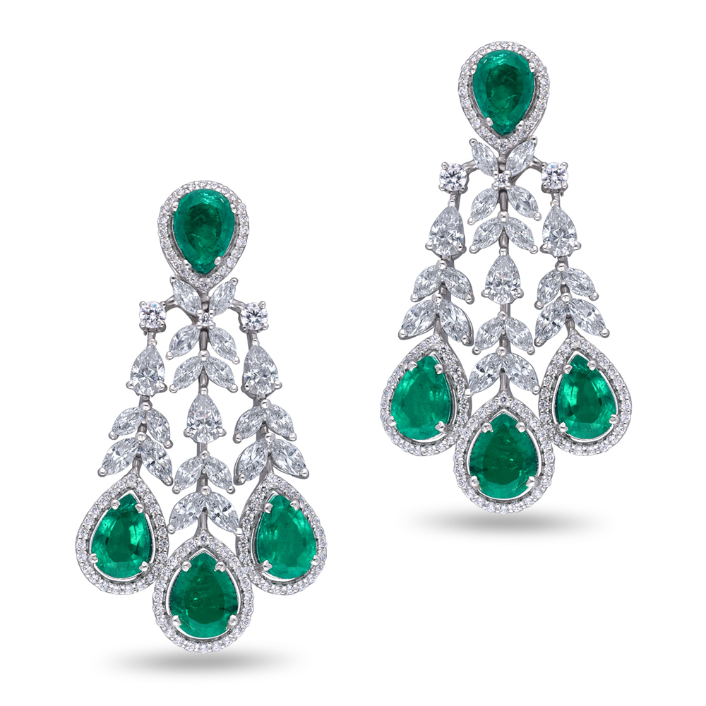 Bridal Earrings in White Swarovski Zirconia & Man-Made Emeralds