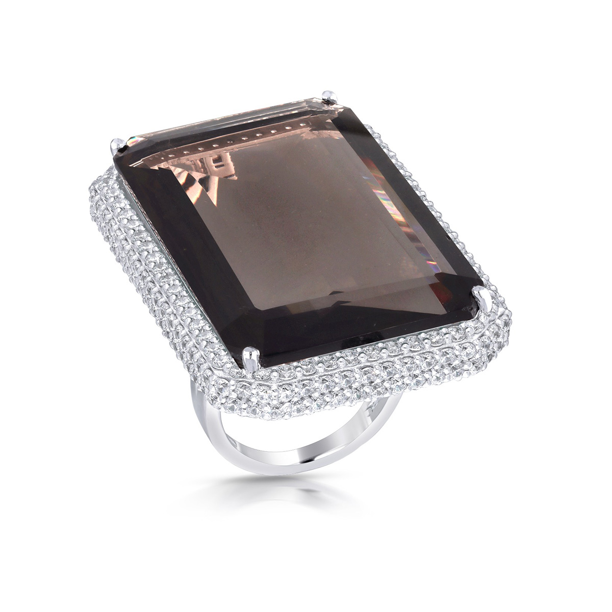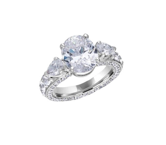 Ring in White Swarovski Zirconia with Man-Made Pear Shaped Blue Sapphires & Man-Made Turquoise Stone