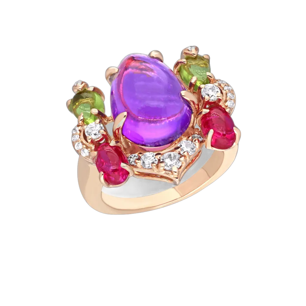 Bridal Ring in White Swarovski Zirconia with Man Made Amethyst, Emeralds And Rubies Set In Rose Gold Plating