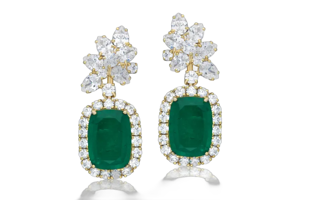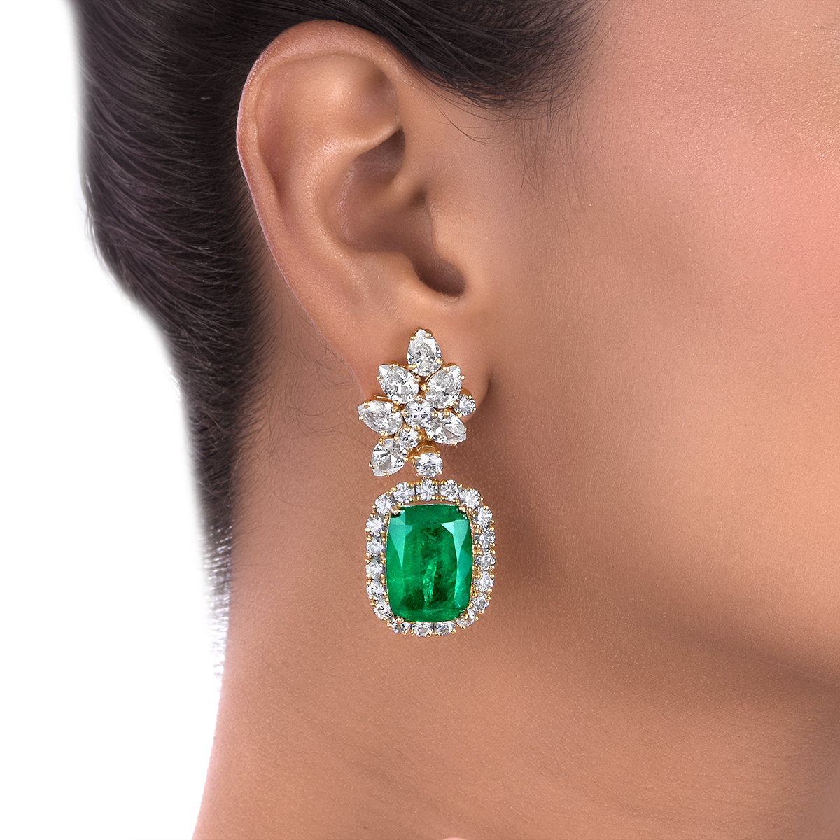 Cocktail Earrings in Swarovski Zirconia & Octagon Shaped Man-Made Emeralds