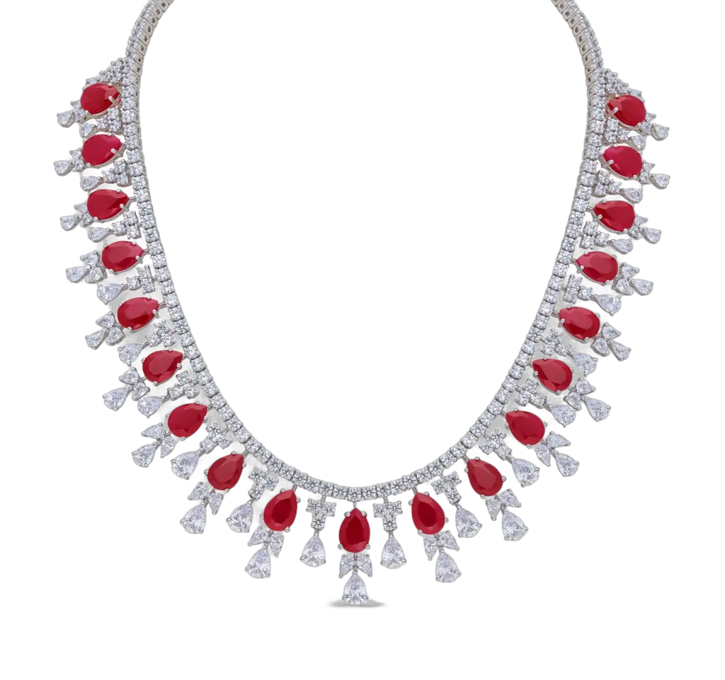 Cocktail Necklace in White Swarovski Zirconia & Pear Shaped Man-Made Rubies