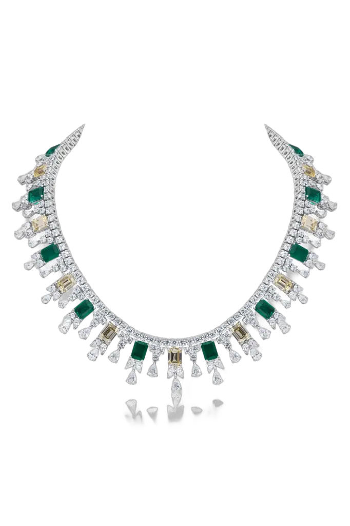 Cocktail Necklace in Yellow & White Swarovski Zirconia with Man-Made Emeralds