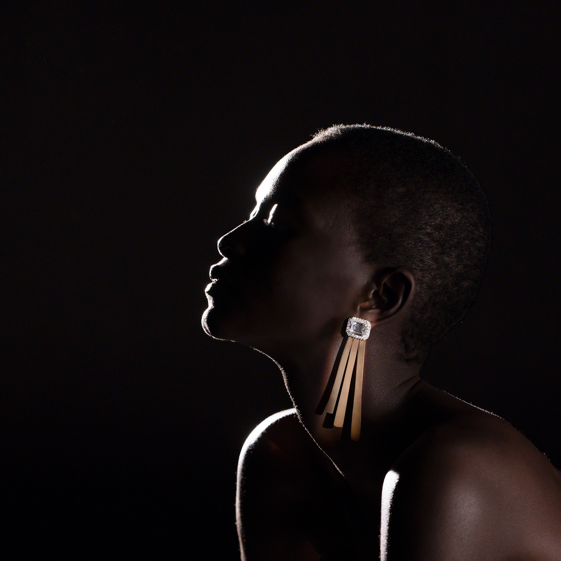 Earrings in emerald cut Swarovski Zircon adorned with brushed bronze stems