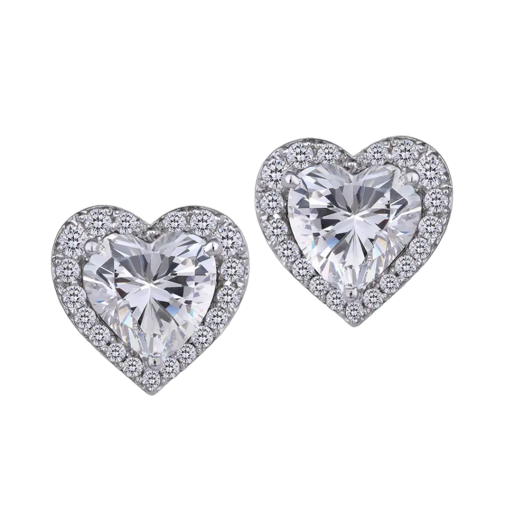 Halo Ear Studs in Heart Shaped Swarovski Zirconia
