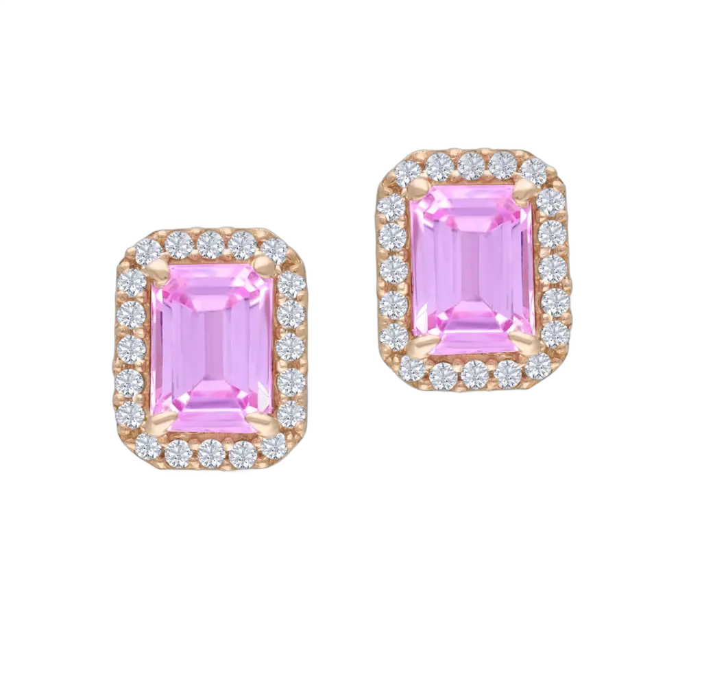 Halo Ear Studs in White & Octagon Shaped Pink Swarovski Zirconia Stones