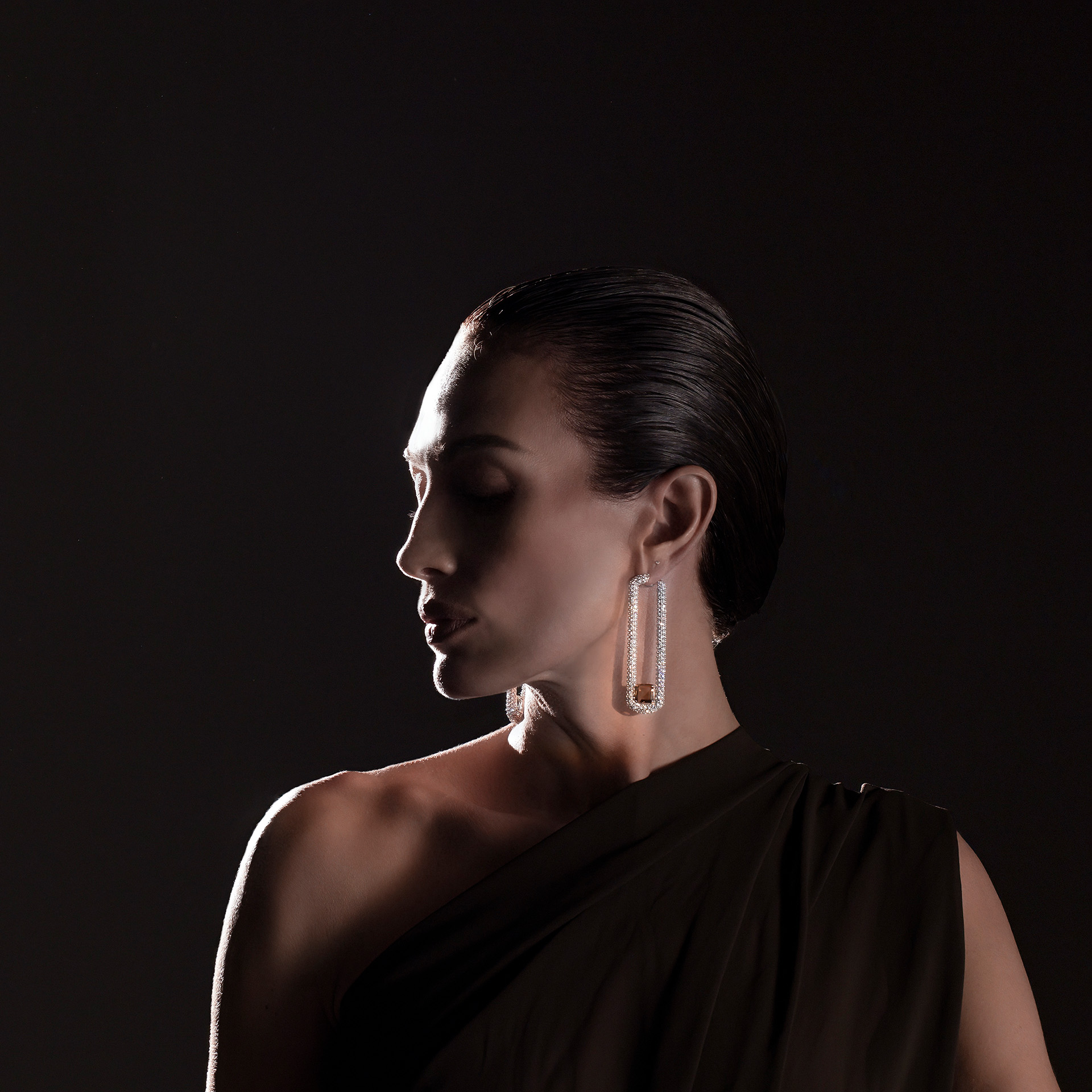 “Swing set” Earrings in Silver and Princess cut Smoky Topaz.