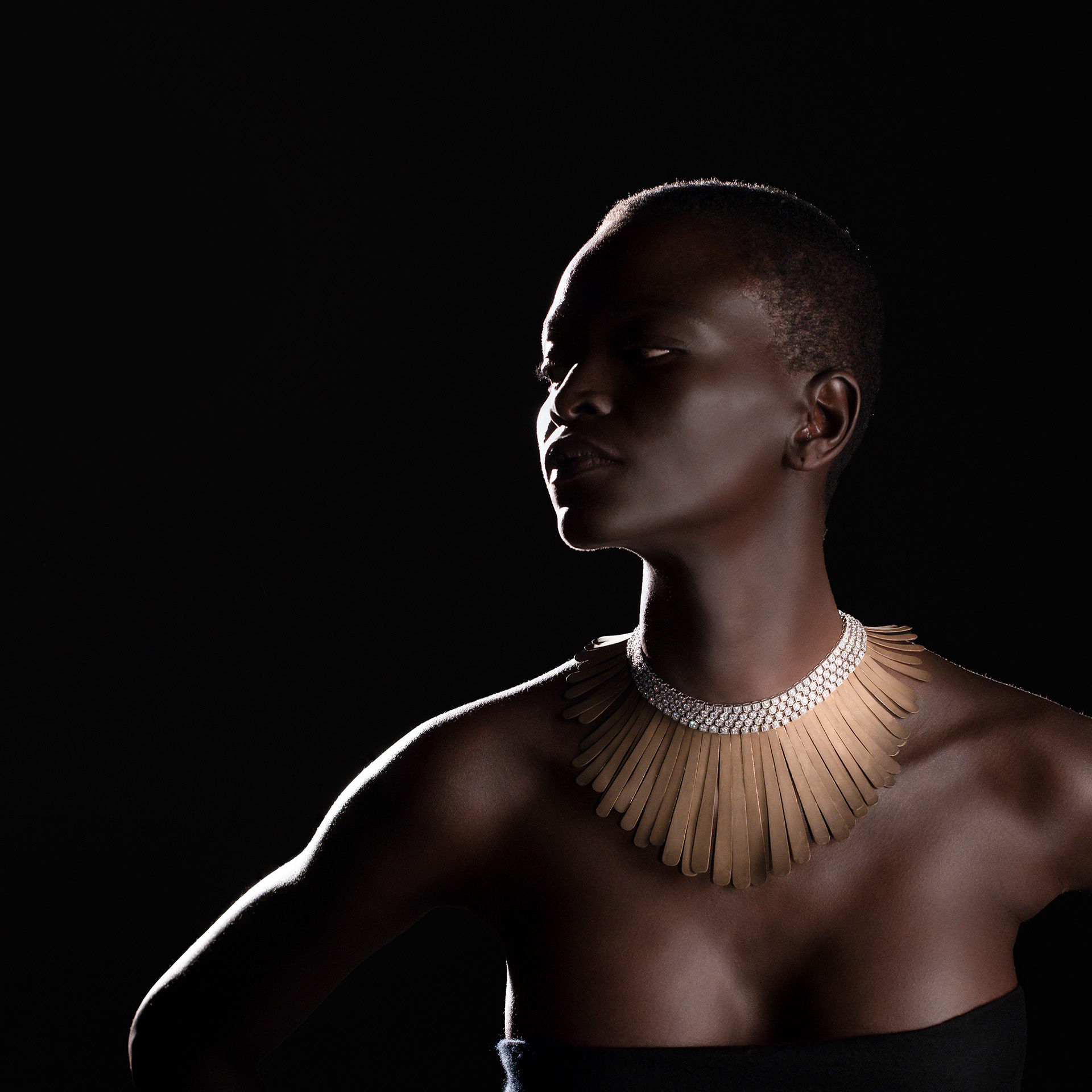 Choker in Swarovski Zircon mosaic and Brushed Bronze Stems