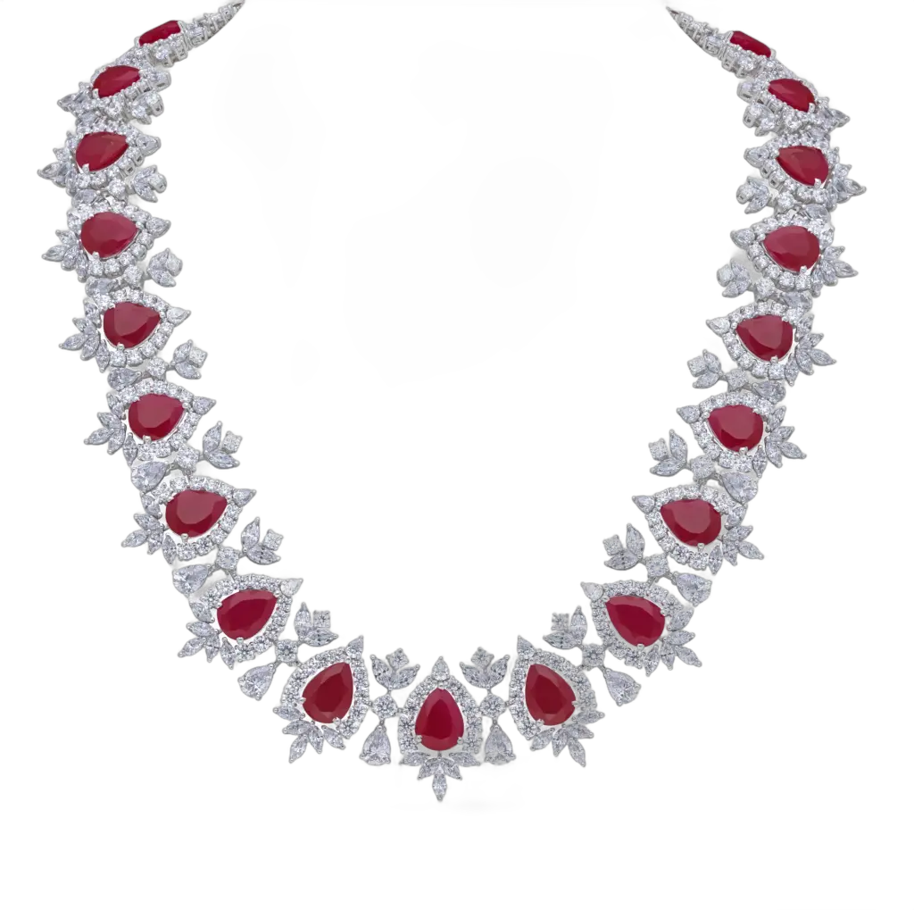 Neck Piece in Multi Shaped White Swarovski Zirconia & Pear Shaped Man-Made Rubies
