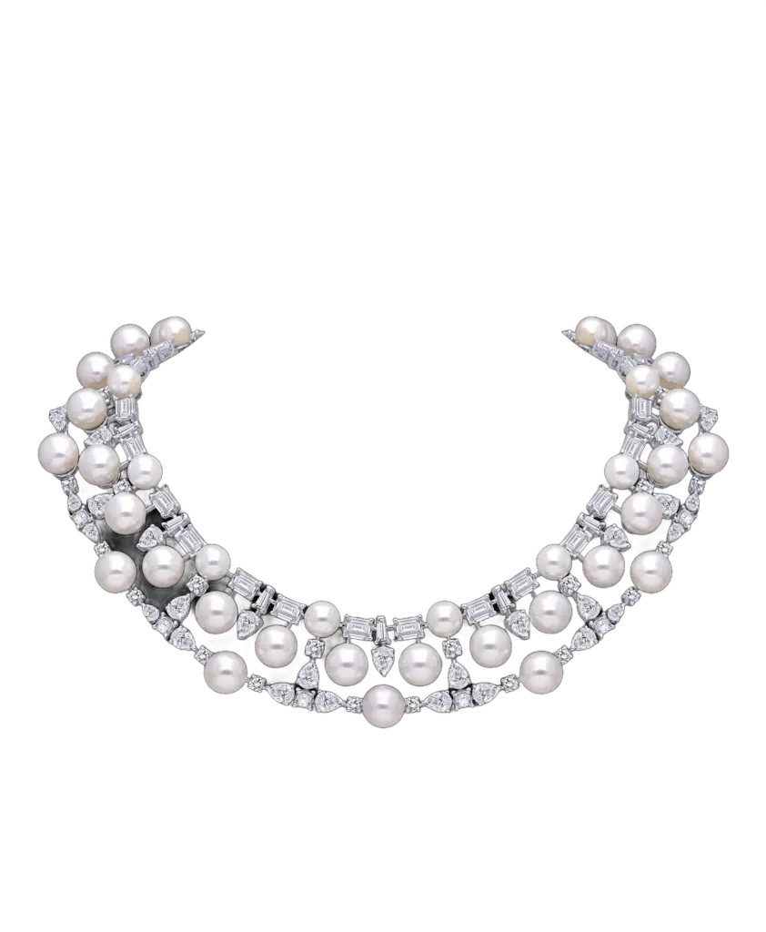 Necklace in Mix Shaped White Swarovski Zirconia with White Korean Pearl