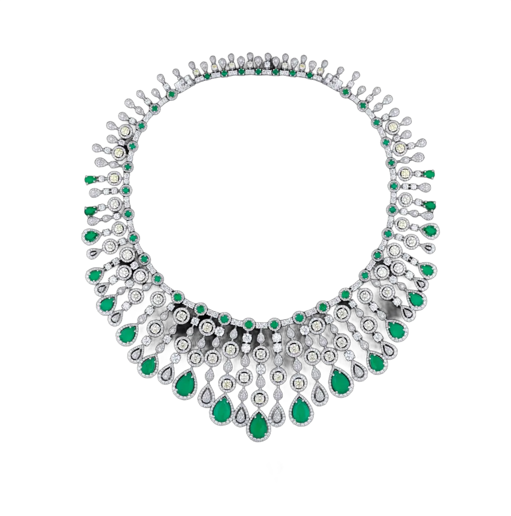 Necklace in White & Yellow Swarovski Zirconia with Man-Made Emeralds
